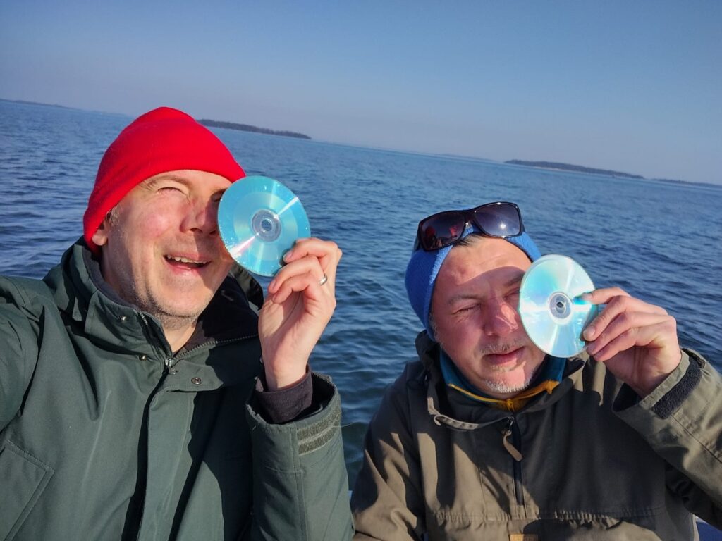 Thomas and Uli have spent countless hours together marvelling at microscopic lifeforms in water samples. While on board Godzilla they plan to sample the Baltic Sea with the help of a specially fabricated plankton net, that consists of many daisy chained chambers made from silk screen gaze of decreasing mesh size, reminiscent of a translucent jellyfish or eel trap. Lifeforms and debris that are caught in the net will thus be filtered by scale and form sediment layers on the inside of the net, which then can be sampled and observed. The color of the sediments in the different chambers could tell something about what creatures, algae, or pollutants are in the water. The net could also serve as an underwater stealth sail. They also plan to experiment with UV light to look for bioluminescence, fluorescent microplastic and stroboscopic lights to visually freeze the motion of water.